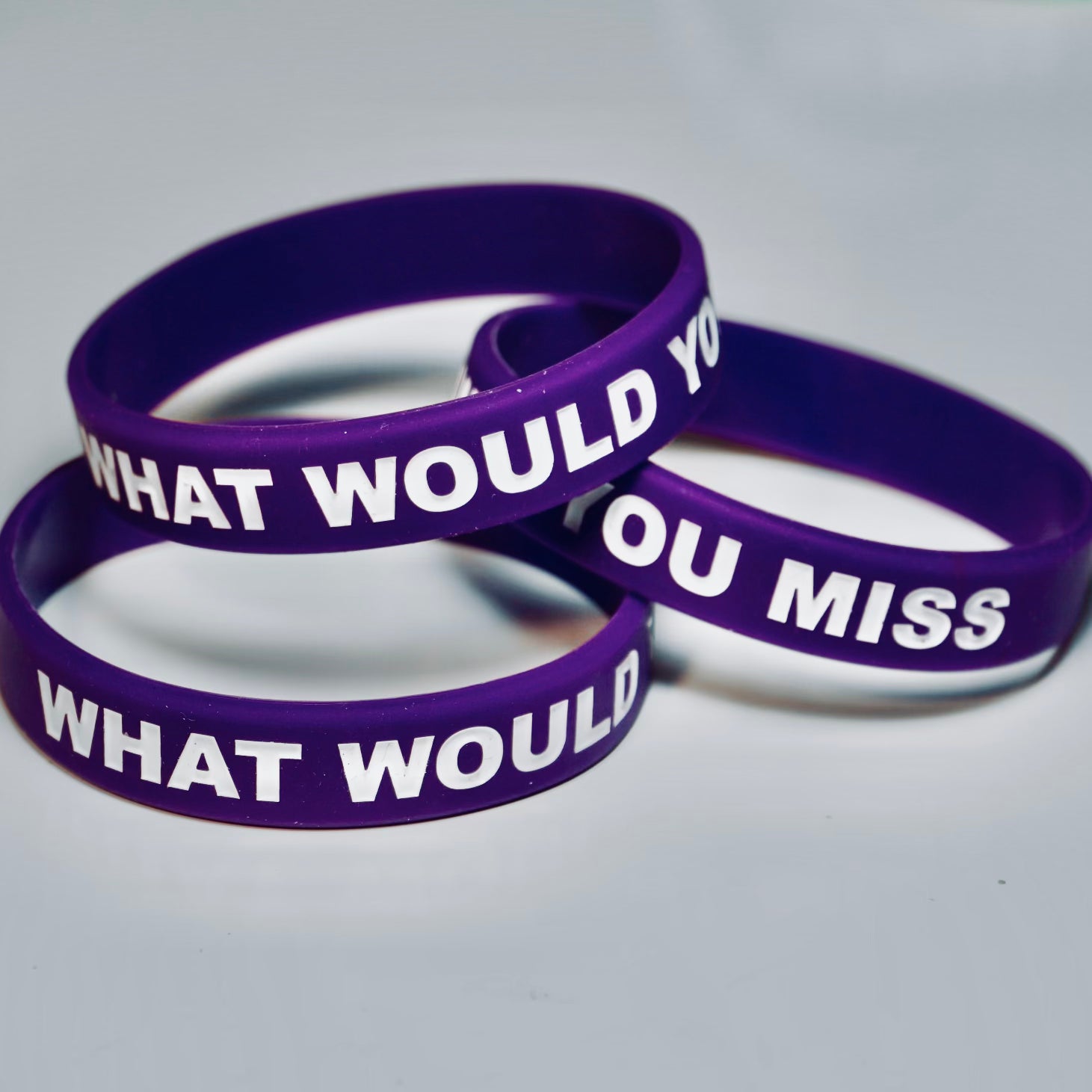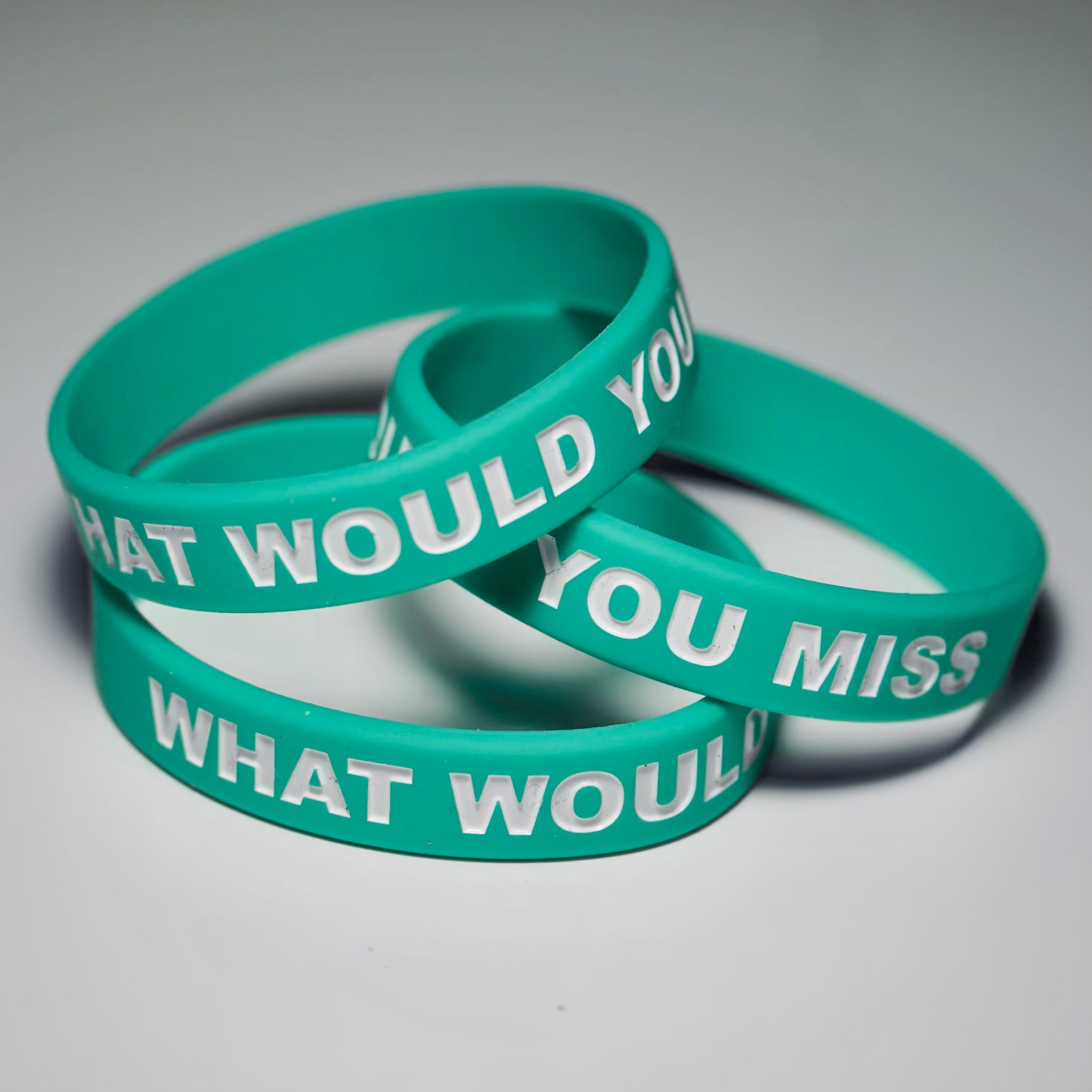 Classic Silicone Wristband, Debossed and White Inked, 1/2" Wide. Message made by Annmarie Giannino